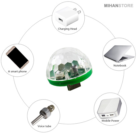 اگر شما به دنبال یک رقص نور برای متفاوت شدن مهمانی ها و جشن های خانگی هستید و میخواهید میهمانی خود رابه یک میهمانی مجلل و ماندنی تبدیل کنید٬ میتوانید از لامپ LED رقص نور موبایل اندروید استفاده کنید. این دستگاه جایگزین مناسبی برای دستگاههای رقص نور لیزری گران قیمت است٬ قیمت این دستگاه بسیار مناسب است و شما با یک وسیله کوچک ارزان یک میهمانی را در یک چشم به هم زدن٬ جذاب و با نشاط میکنید و شادی افراد را دوچندان میکنید. لامپ LED رقص نور موبایل اندروید با قابلیت اتصال به تلفن همراه(اندروید) و یا هر وسیلهی دیگری که خروجی usb دارد٬ مناسب برای مجالس مختلف مانند: مجالس عروسی٬ جشن تولد٬ سالگرد ازدواج و حتی مناسب برای دکوراسیون و اتاق خواب کودک است. لامپ LED رقص نور موبایل اندروید یک محصول خارق العاده و جذاب است٬ این محصول قابلیت اتصال به OTG جهت اتصال به تلفن همراه است. نور پردازی این دستگاه جلوه های بصری خاصی را بوجود می آورد٬ که عکس های مراسم را نیز زیباتر میکند. لامپ LED رقص نور موبایل اندروید با تغییر رنگ همزمان و بازی رنگها متناسب با ریتم موسیقی نور های رنگی و نشاط آوری را ایجاد میکند٬ که تاثیر زیادی بر حس و حال مراسم میگذارد.