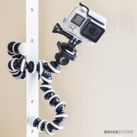 لرزش دست در هنگام عکاسی، یکی از عواملی است که روی کیفیت عکسها تاثیر نامطلوبی میگذارد. استفاده از سهپایه و تکپایه در عکاسی حرفهای و غیرحرفهای برای این است که از لرزشهای ناخواسته جلوگیری شود. سه پایه انعطاف پذیر گوریلا سایز متوسط 130 گرم وزن دارد و حداکثر ارتفاع آن 25 سانتیمتر است. حمل آن راحت است و درون کیف و کولههای شخصی یا لپتاپ جای میگیرد. پایههای آن از گویهایی تشکیل شده است که به کمک مفصلهایی انعطافپذیر در کنار هم قرارگرفتهاند. این مفصلها امکان تغییر زاویه و خم و راست شدن را به هرکدام از پایهها میدهند؛ در نتیجه میتوان آنها را به فرم دلخواه درآورد، از جایی آویز کرده یا به دور جسمی دیگر متصل کرد. این پایهی انعطافپذیر کوچک با پایههای ضد لغزشش، امکان ثابت نگهداشتن گوشی را روی هر سطح ناهمواری فراهم میکند.