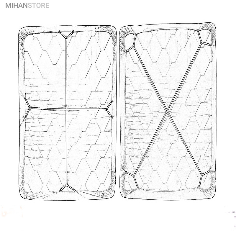این گیره ها از که مرکز آن در وسط تخت بوده و به 4 گوشه ی ملحفه متصل شده و سفت آن را میکشد. همچنین با داشتن تسمه های تنظیم شونده ی طول برای هر سایز تشک و هر سایز ملحفه ای حتی تشک های سفارشی و در هر ابعادی مناسب می باشد. و علاوه بر تشک تخت برای نگه داشتن روکش ابزار و وسایل و… نیز مورد استفاده قرار میگیرد.
