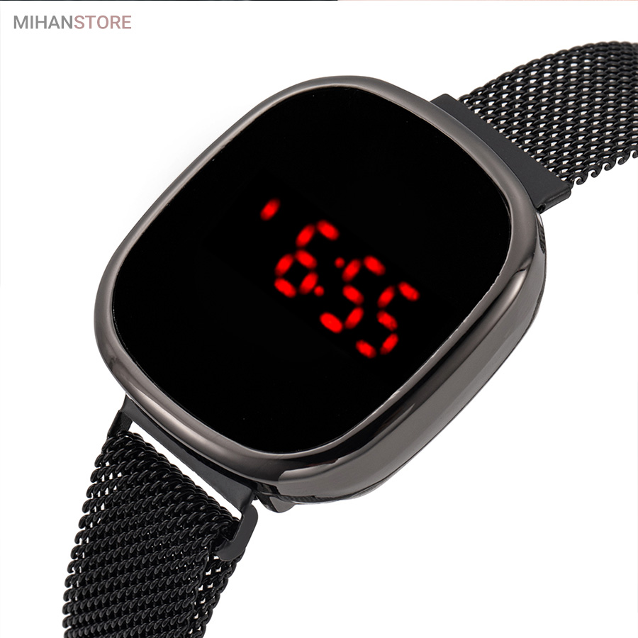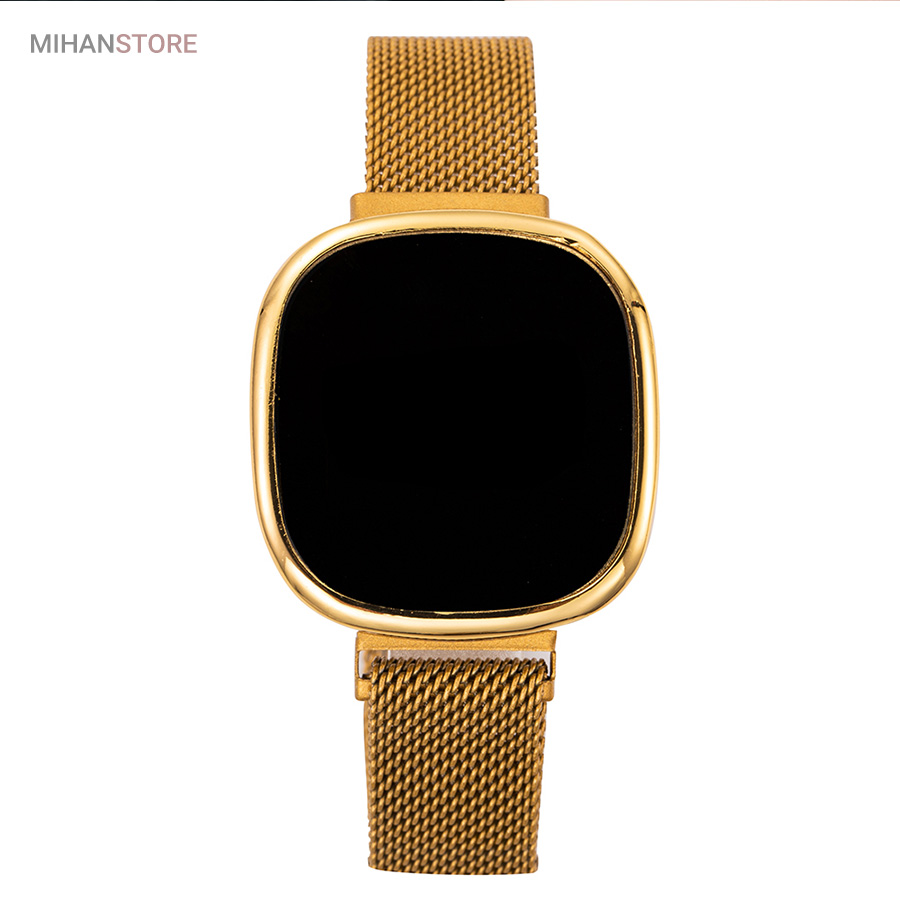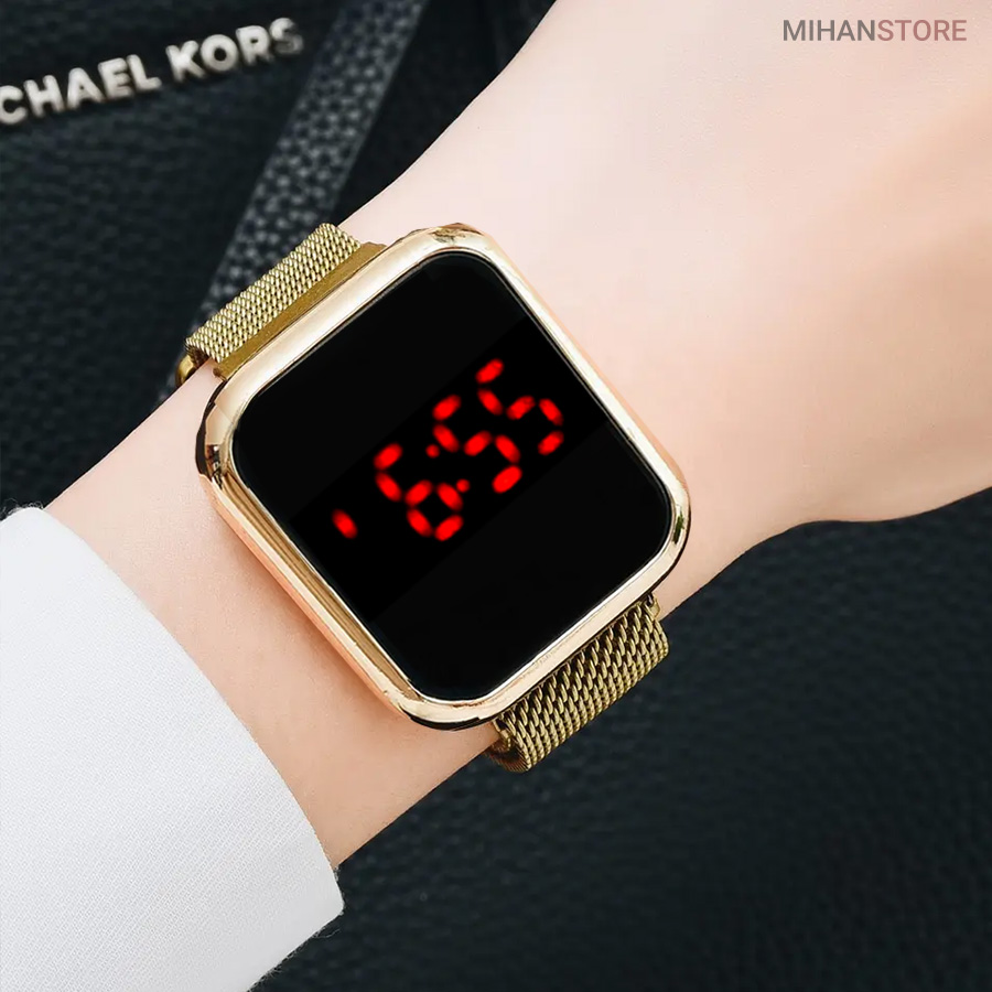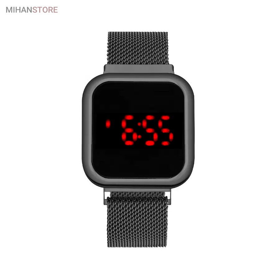 چراغ های LED قرمز رنگ ساعت را برای شما نمایش می دهد. صفحه نمایشی و مربع شکل ساعت در ابعاد 40 × 40 میلیمتر طراحی شده و ضخامت آن در قسمت بدنه 10 میلیمتر است.  این ساعت