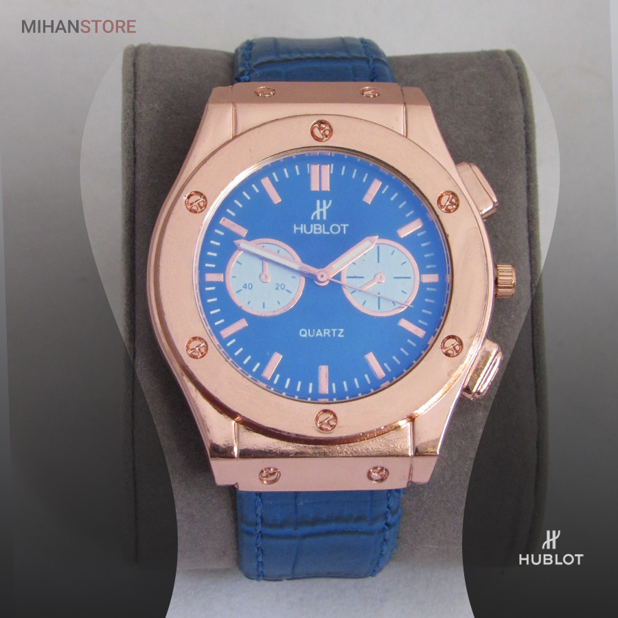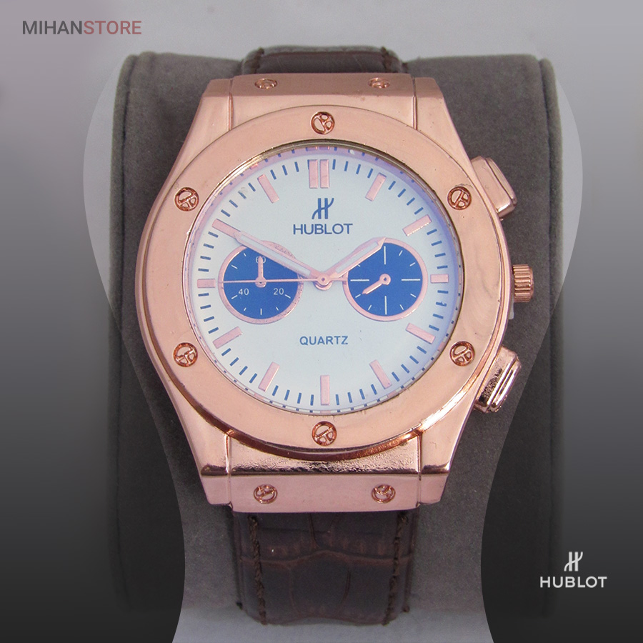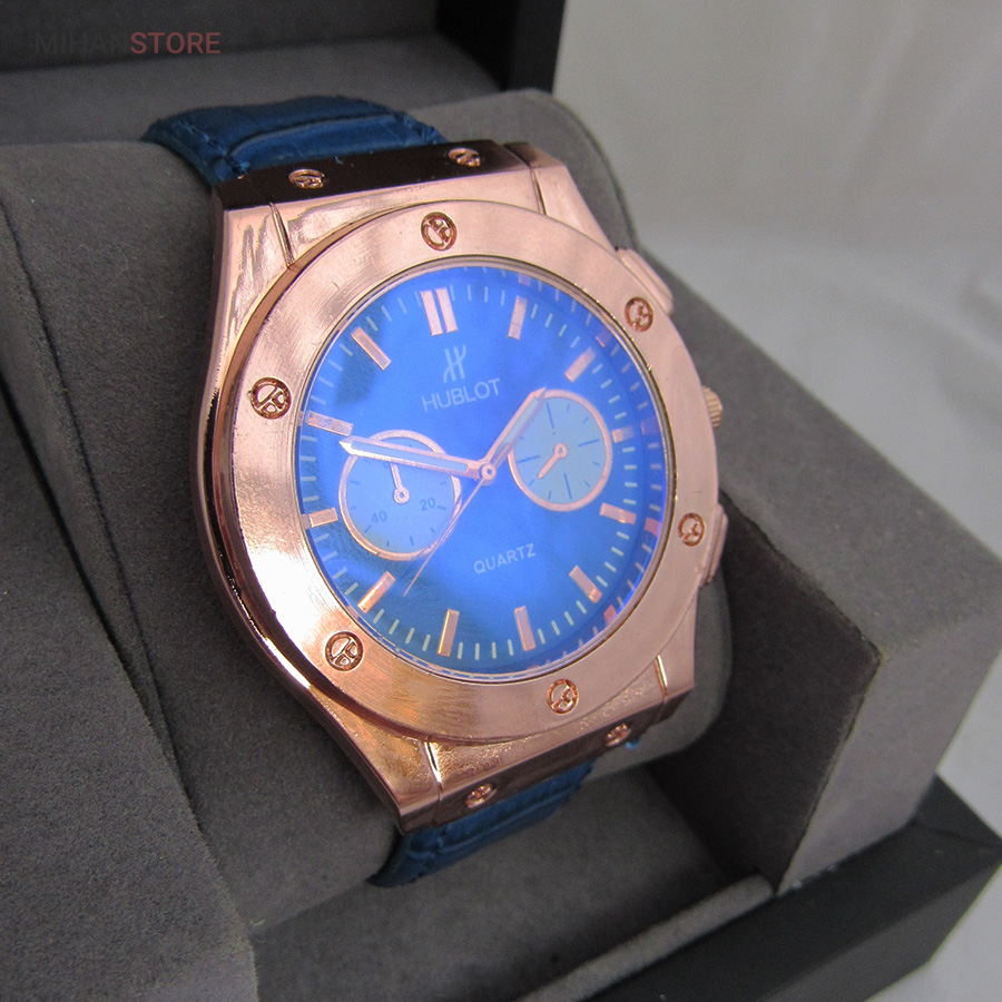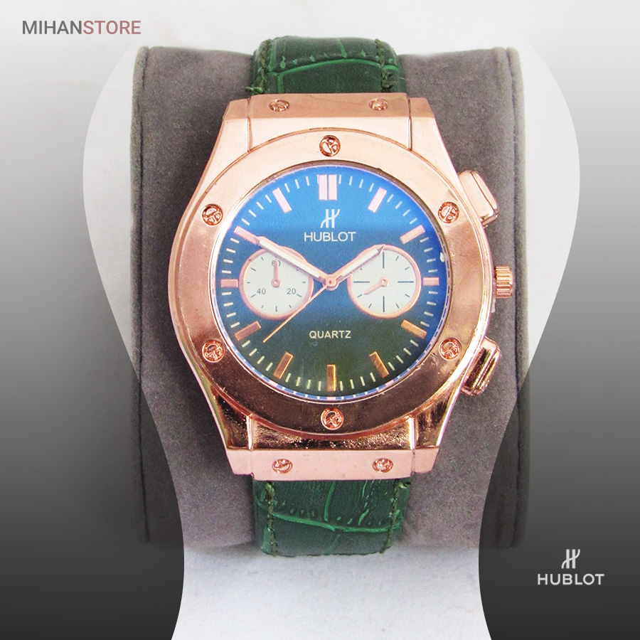 Hublot می باشد. این ساعت دارای بند طرح چرم بسیار با کیفیت و صفحه شیشه ای می باشد که در رنگ بندی متنوع عرضه شده است که هنگام تکمیل سفارش در سبد خرید رنگبندی آن قابل انتخاب است. ساعتی که پیش روی شماست طراحی شده از روی این مدل