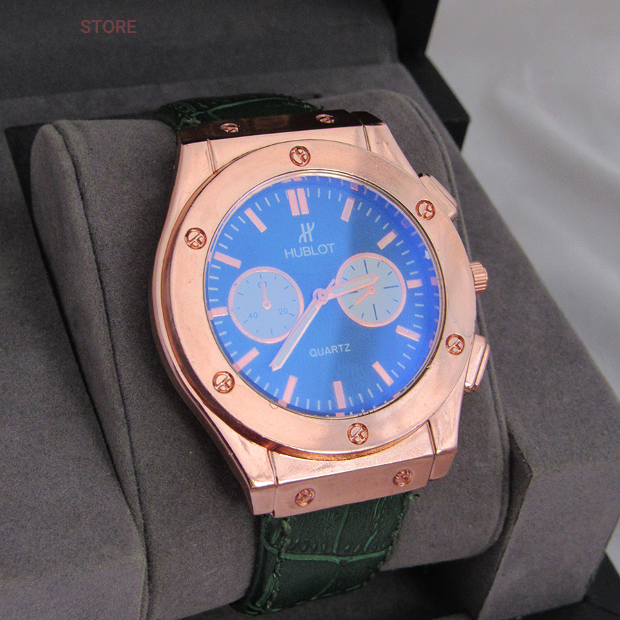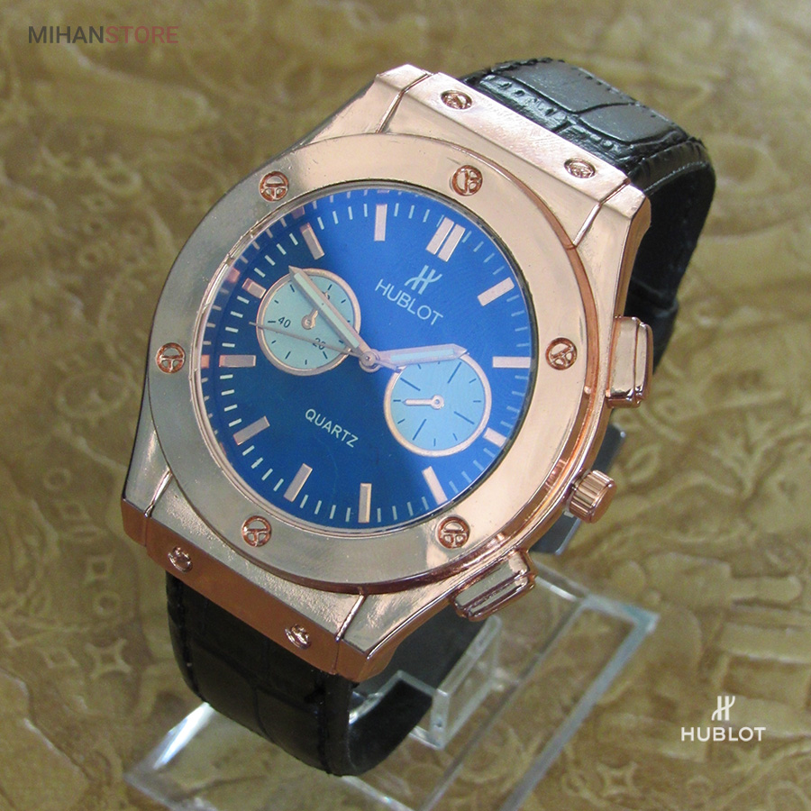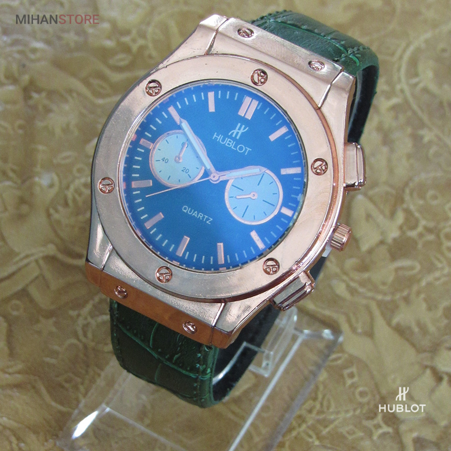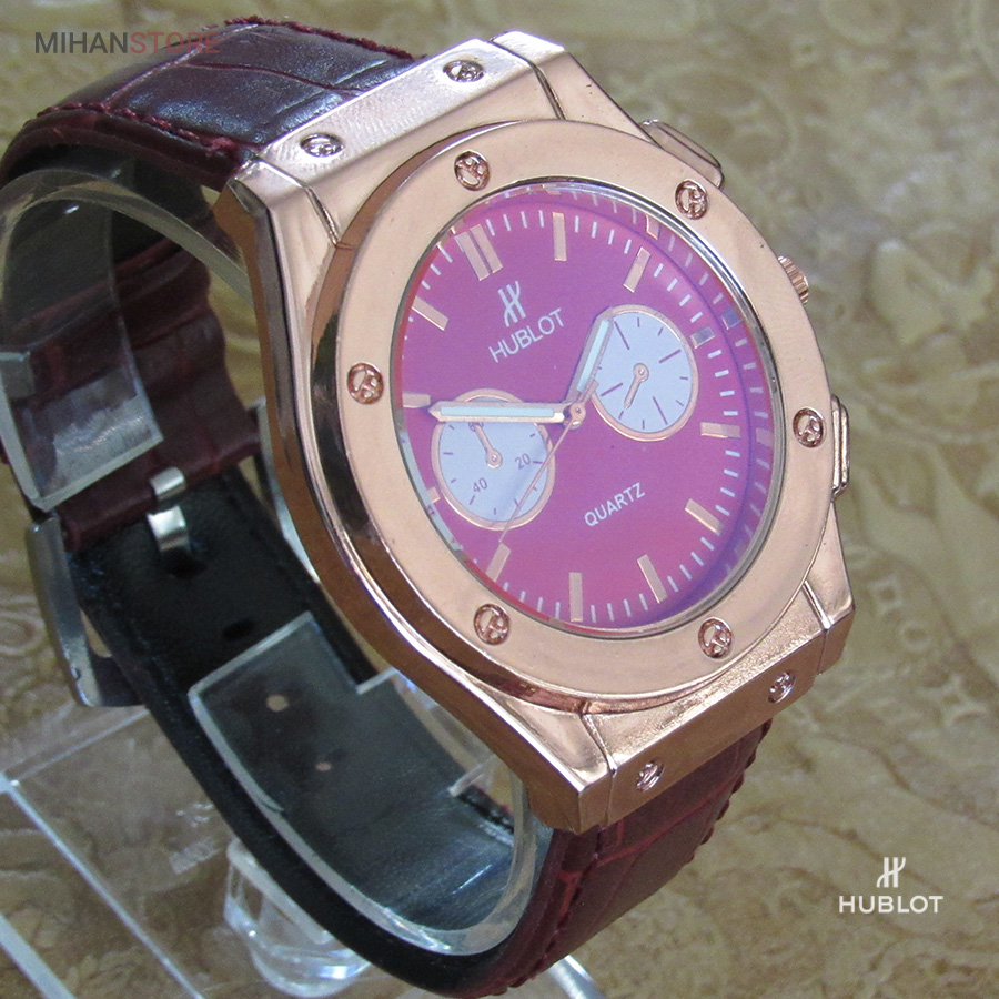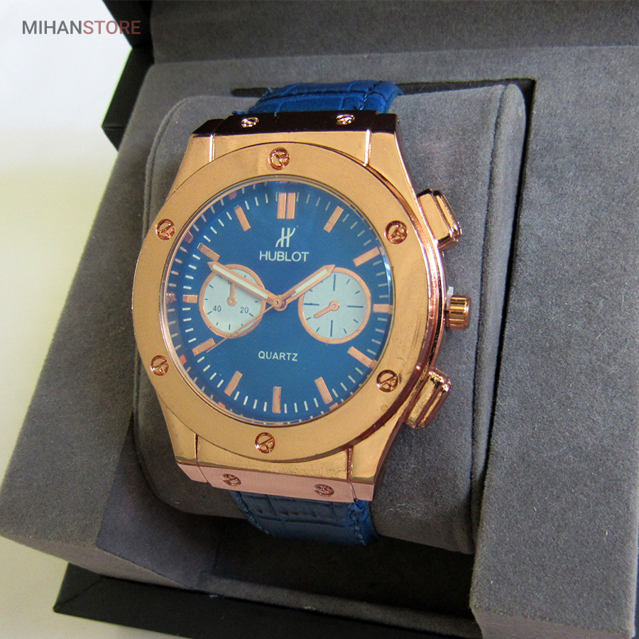 Hublot می باشد. این ساعت دارای بند طرح چرم بسیار با کیفیت و صفحه شیشه ای می باشد که در رنگ بندی متنوع عرضه شده است که هنگام تکمیل سفارش در سبد خرید رنگبندی آن قابل انتخاب است. ساعتی که پیش روی شماست طراحی شده از روی این مدل