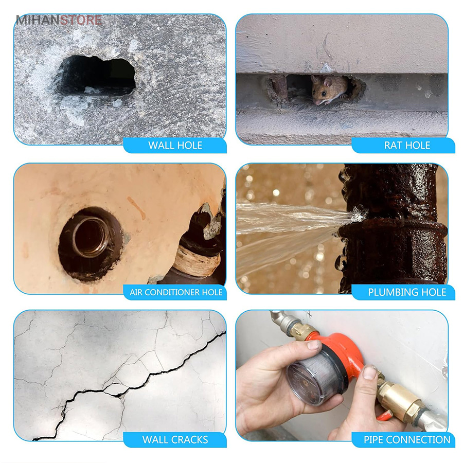 خمیر آب بندی و پر کننده منافذ از یک ماده مهندسی سازگار با محیط زیست ساخته شده است که ضد آب و مقاوم در برابر خوردگی است. در نتیجه، چگالی بالایی دارد و می تواند به طور موثری از ورود حیوانات جلوگیری کند. علاوه بر این، چسبندگی خوب آن، آن را برای وصله کردن سوراخ ها عالی می کند. خمیر آب بندی و پر کننده منافذ درزگیر ضد آب بسیار انعطاف پذیر است و می توانید آن را به هر شکلی که می خواهید مانند گرد، مربع، بلند بچرخانید. شما می توانید با توجه به اندازه واقعی سوراخ، آن را به شکل درز درآورید، استفاده از آن بسیار ساده و راحت است. بعد از استفاده و قرارگیری در محل بعد از دو ساعت شکل گیری خمیر به مرور سفت و بعد از یک روز کامل خشک و سخت می شود و کار با آن را بسیار آسان می کند. به سادگی شکاف را با درزگیر ضد آب جدید پر کنید و مهر و موم در چند ساعت سفت می شود. خمیر ساخته شده از مواد رسی دارای پلاستیک خوبی است و همراه با چسب خنک کننده است که می تواند سوراخ ها را به خوبی پر کند.استفاده از خمیر آب بندی ساده است،خمیر را با دست بر اساس مکانی که نیاز به تعمیر دارد به سطح بچسبانید.