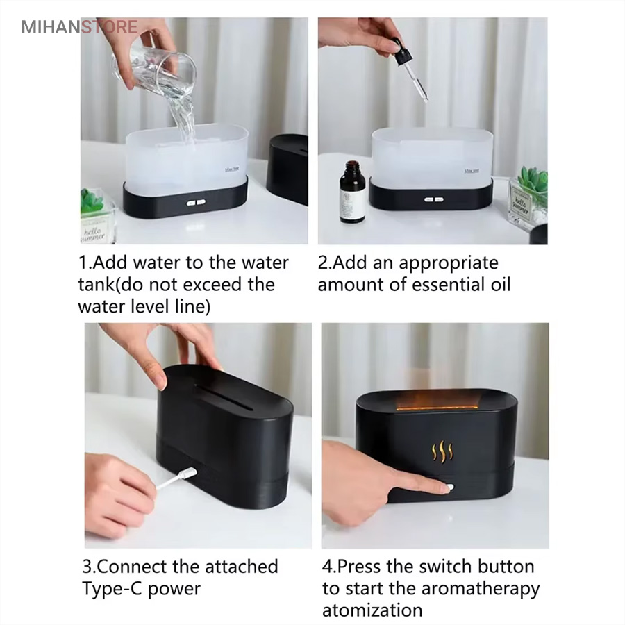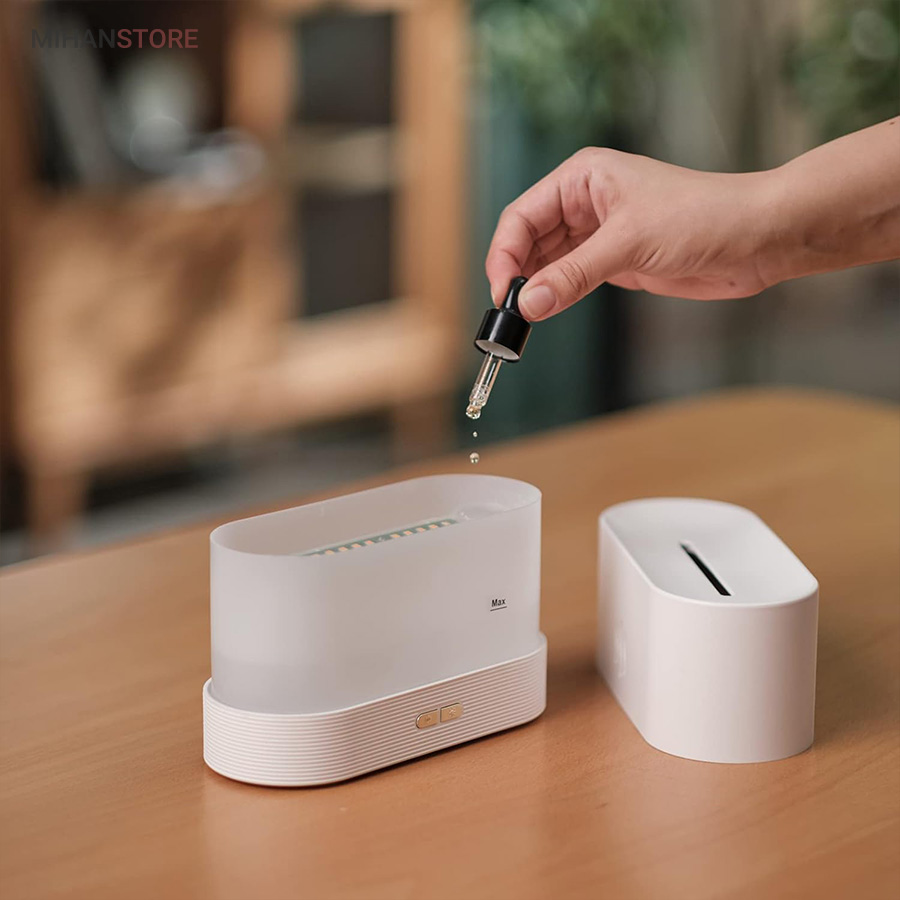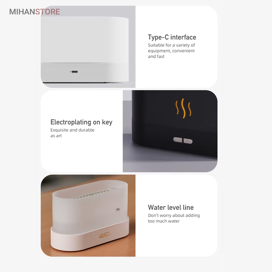 همچنین این گجت هوشمند با  استفاده از یک اداپتور به برق مستقیم متصل و در گوشه ای ازمنزل شما قرار می گیرد، همچنین دارای تراشه هوشمند است برای خاموش کردن دستگاه بخور سرد طرح شعله آتش در زمانی که اب مخزن تمام شده است.همچنین این مرطوب کننده ی هوا علاوه بر این که یک بخور سرد است، یک چراغ خواب زیبا و همچنین اکسسوری جذاب و همچنین یک خوشبو کننده هوا هم محسوب می شود، زیرا شما با ریختن چند قطه از اسانس های میوه ای و گل های خوشبو محیط اطراف خود را خوش بو می کنید.همچنین گنجایش مخزن این دستگاه بخور برای ریختن اب 200 میلی لیتر است که می تواند تا چند روز برای شما جواب گو باشد، همچنین دارای وزنی معادل 326 گرم است که باعث می شود قابلیت حمل راحت تری داشته باشد.  همچنین دارای دو کلید جانبی برای تغییر مود و نور هم در ان تعبیه شده است.