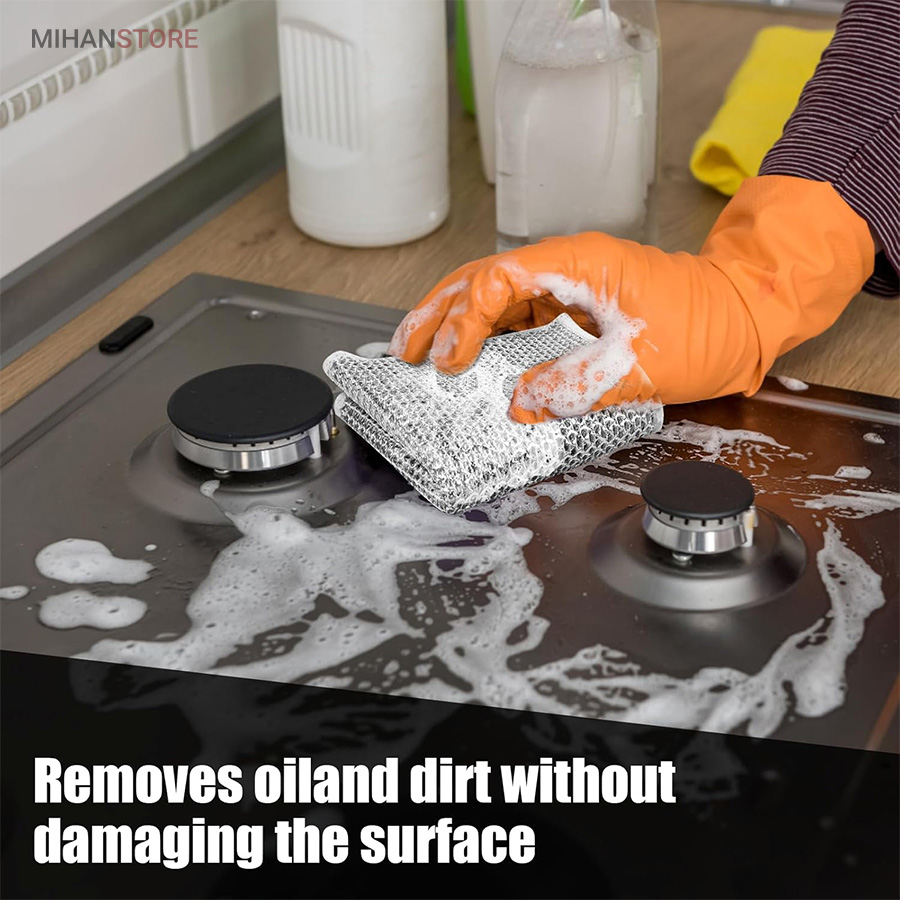 مناسب برای سطوح حساس: اگر نگران ایجاد خش یا آسیب به سطوح حساس مانند اجاق گاز، سینک ظرفشویی یا سطوح شیشه‌ای هستید، این محصول با جنس سیمی آلومینیومی و تراکم مناسب، بدون ایجاد خراش، سطوح را تمیز می‌کند.