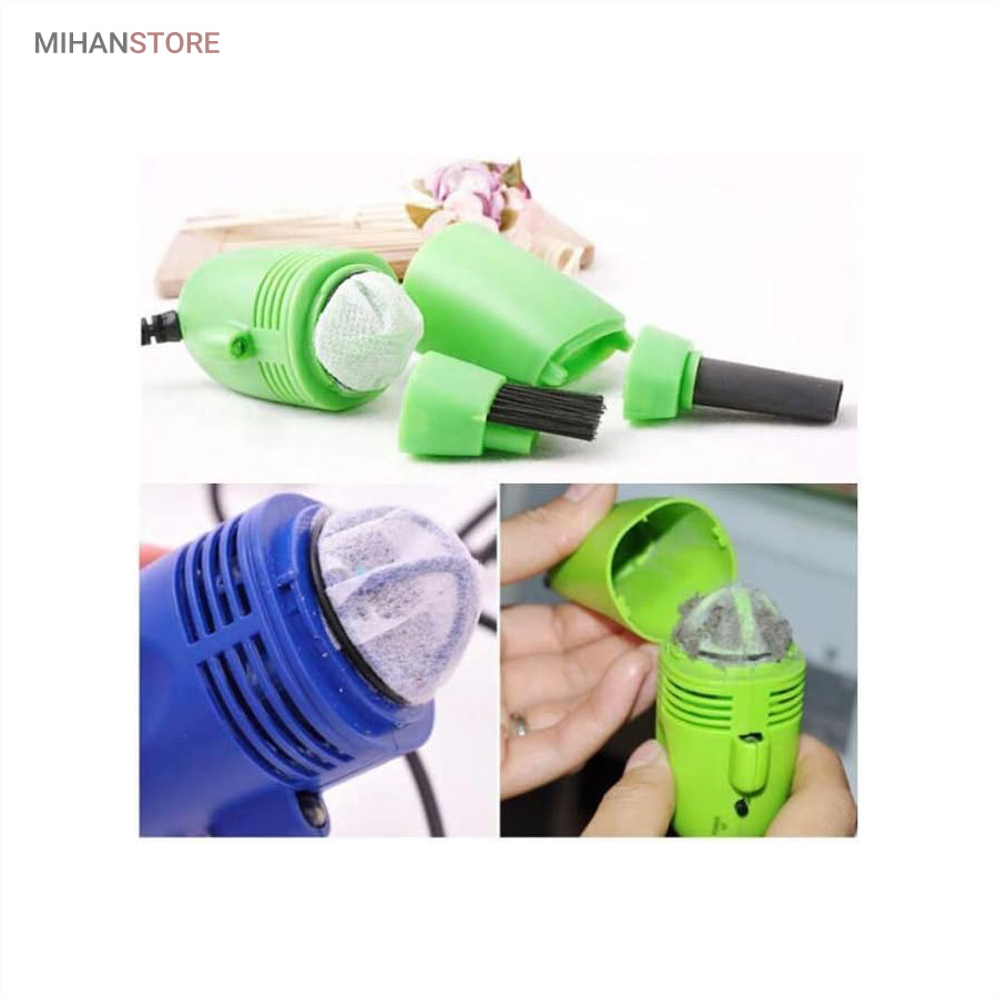 Computer Mini Vacuum یا همون جارو USB. با کمک این جارو کوچیک می تونید گرد و غبار بین کلید های کیبورد یا منافذ خاک گرفته کامپیوتر و یا مانیتور رو تمیز کنید. از اون جایی که بدون باتری و با کابل USB کار میکنه خیلی انتظار مکش قوی نداشته باشید چون فقط برای جمع آوری گرد و غبار مناسبه.  دو تا سری متفاوت هم داره که یکیش از پلاستیک نرم و انعطاف پذیره تا به راحتی جاهایی مثل بین کلید های کیبورد رو تمیز کنه و سری دیگه هم که دارای برس هست می تونه به جمع آوری تکه های بزرگتر کمک کنه.