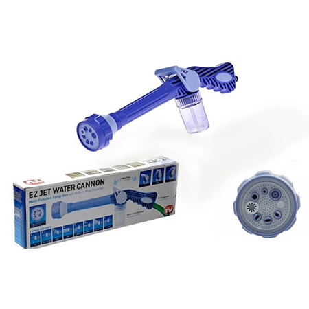 ایزی جت وسیله ای کامل و بی نظیر برای انجام کلیه امور آبیاری باغچه ها، باغبانی، تمیزکردن سطوح خارجی و نمای ساختمانها و همه فضاهای خارجی منزل و همچنین شستشو اتومبیل می باشد. با استفاده از ایزی جت انرژی آب را مهار کرده و می توانید هر طور که مایل هستید با استفاده از 8 خروجی مختلف تعبیه شده روی نازل انتهایی، آب را با سرعت و شدت دلخواه خود بر روی سطوح مختلف اسپری نمایید. با این وسیله،‌ آب با فشار زیاد، می تواند در فواصل دور و یا ارتفاعات غیر قابل دسترس متمرکز شده و براحتی و بدون نیاز به جارو و طی، کلیه سطوح را به سرعت تمیز نماید. از ویژگی های دیگر این محصول مخزن نگه دارنده مواد شوینده آن می باشد که پاکیزگی کامل اتومبیل و یا منزل شما را به ارمغان خواهد آورد.