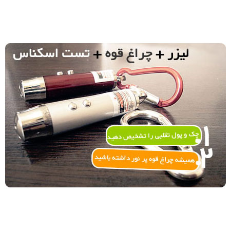 مهمترین ویژگی این دستگاه تست اسکناس و چک پول های تقلبی است که این روزها با وارد شدن پول های تقلبی در بازار ، این دستگاه می تواند کمک بزرگی برای تشخیص این امر باشد. در کنار تست اسکناس نیز یک چراغ قوه (با نور مهتابی) و یک لیزر با برد بسیار بالا نیز قرار دارند که همگی باعث شده اند این دستگاه به یک دستگاه سه کاره کاربردی با قیمت استثنایی تبدیل شوند!