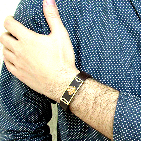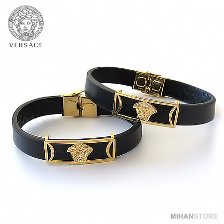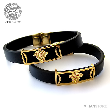 دستبند چرمی طرح ورساچه با دو رنگ قهوهای و مشکی و پلاک نازک طلایی ورساچه نمونهای از زیورهای ساده و در عین حال پرطرفدار از جانب آقایان و خانوم ها است که با اکثر رنگهای لباس همخوانی داشته و در عین حال متفاوت دیده میشود. این دستبندها مناسب ترین هدیه برای جوانان شیک پوش است.