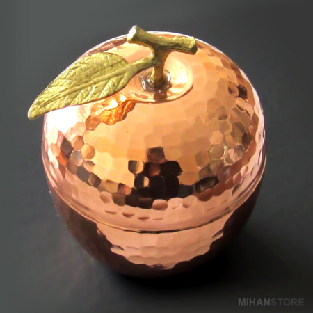 چای یکی از نوشیدنیهایی است که جایگاه ویژهای در بین ما ایرانیان دارد، تا حدی که دلمان میخواهد با استفاده از ظروف چایخوری زیباتر، از این نوشیدنی گرم لذت بیشتری ببریم. یک قندان مسی دستساز میتواند جلوهی زیبایی به سینی پذیرایی چایمان بدهد. سیبی زیبا از جنس مس که در نگاه اول حس کنجکاوی را برمیانگیزد. جزییات در ساخت این قندان کاملا رعایت شده؛ فرمی که کاملا شبیه به میوهی سیب بوده و حتی برگ و ساقهی سیب هم به آن اضافه شده است. ارتفاع قندان حدود 9 سانتیمتر است و وزنی در حدود 150 گرم دارد. نیمهی بالای سیب، درب قندان محسوب میشود و با برداشتن درب، فضای قرار دادن قند را میبینیم. دهانهی این فضا دایرهایشکل است و قطری در حدود 8 سانتیمتر دارد. روی قسمت خارجی قندان، دایرههای کوچکی دیده میشود که با ضربههای چکش ایجاد شدهاند و در اصطلاح به این عمل چکشکاری میگویند. این قندان مسی برای علاقهمندان به هنرهای سنتی و محصولات دستساز انتخابی مناسب به نظر میرسد. مس به دلیل خاصیت شکلپذیری و چکشخوار بودن از قدیم برای ساخت ظروف استفاده می شد. حرارت در ظروف مسی بهخوبی پخش میشود و این موضوع باعث خوشمزهتر شدن و به اصطلاح جا افتادن غذا میشود. البته نظرهای مخالف هم در مورد فواید این ظروف وجود دارد. شاید بهتر باشد از این ظروف برای پخت همهی وعدههای غذایی استفاده نکنیم و استفاده از آن را به چند بار در هفته محدود کنیم. همچنین در این ظرفها تا حد امکان نباید غذاهای اسیدی یا ترش پخت؛ چون باعث از بین رفتن پوشش قلع آن میشود. همچنین برای شستوشوی این ظروف بهتر است آنها را با دست بشوییم و از قرار دادن آن در ماشین ظرفشویی خودداری کنیم.
